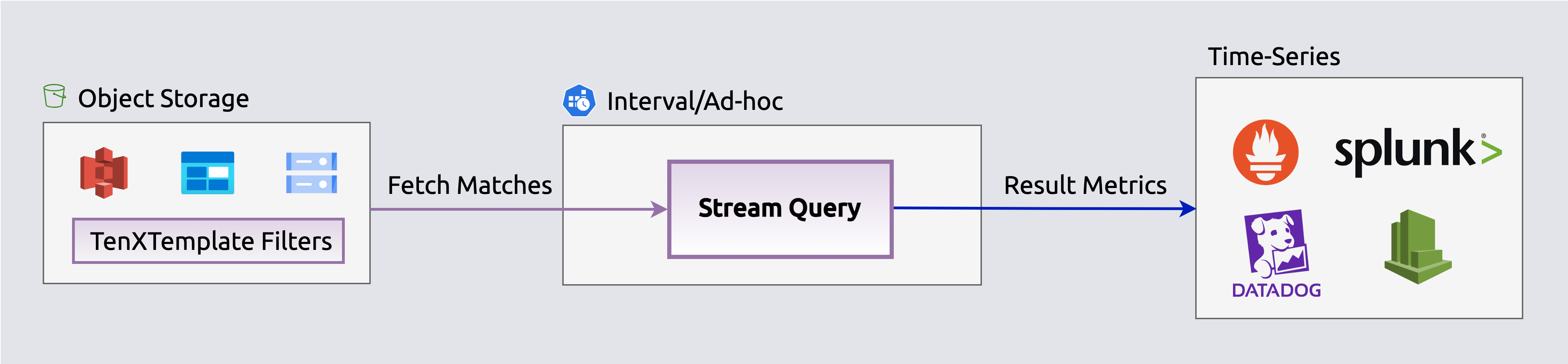 Convert millions of S3 events into metric data points (counts, rates, distributions) on-the-fly and publish to time-series DBs. For Datadog users: custom metrics cost a fraction of indexed log pricing — aggregate error rates, request counts, or latency percentiles from S3 logs and publish directly to Datadog Metrics, bypassing log ingestion entirely.