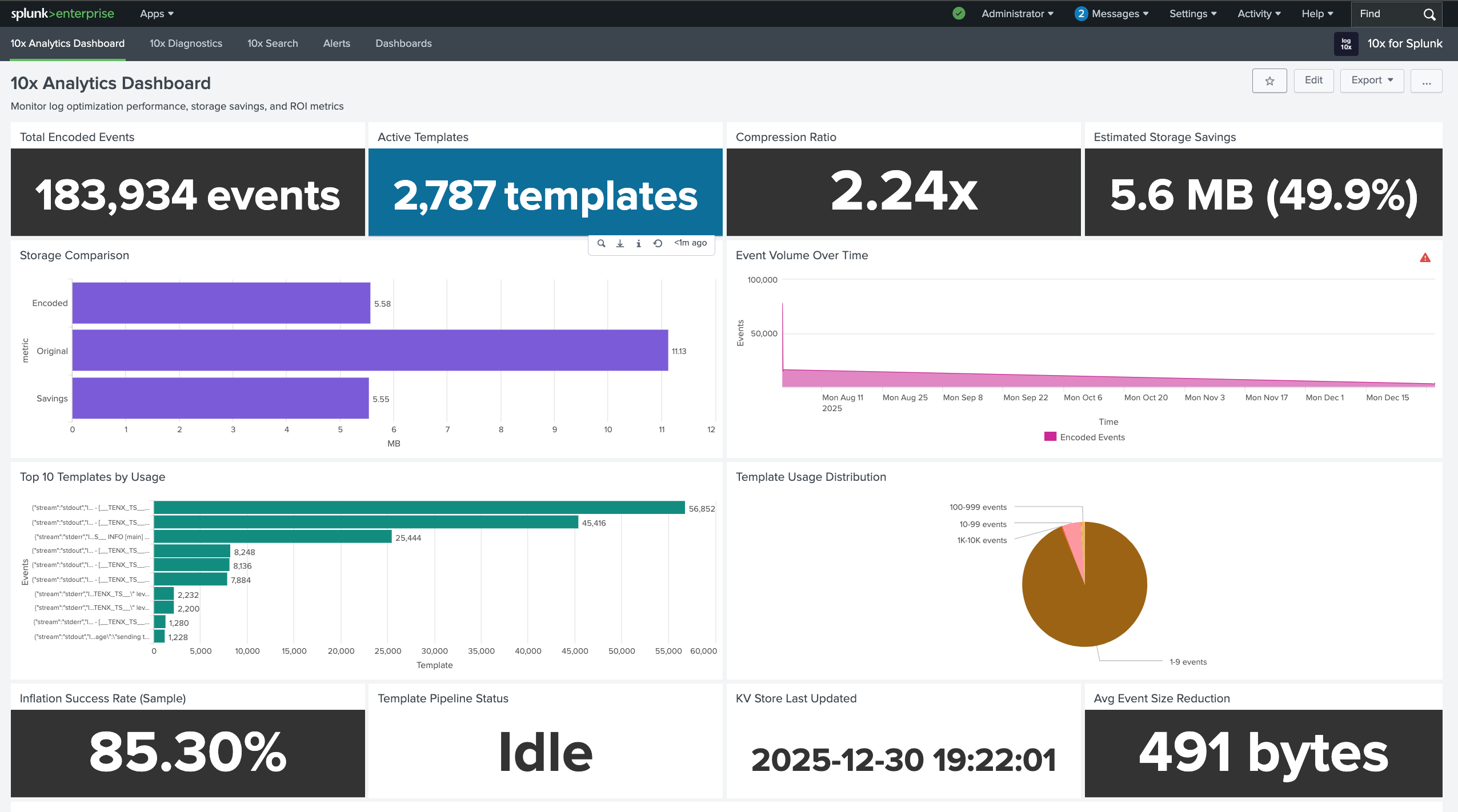 Search and visualize compact events in Splunk with zero data loss. This open-source app transparently expands compact events at search time, maintaining full querying, dashboard, and alerting capabilities while reducing ingestion costs by over 50%.